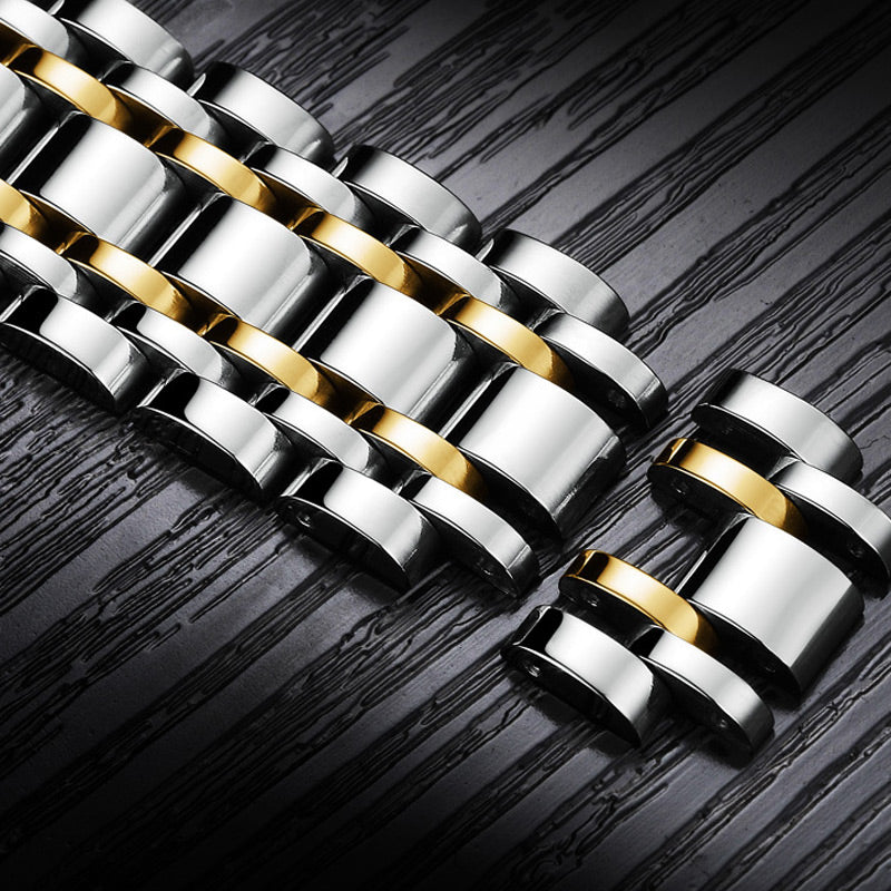 PREMIUM BYGGING OG KOMFORTABEL PASSFORM: Denne klokken er laget av materialer av høy kvalitet med en polert rem med syv perler, og har en imponerende holdbarhet og en strukturert, eksklusiv følelse. Den ergonomiske utformingen sørger for at den sitter godt og komfortabelt på håndleddet.