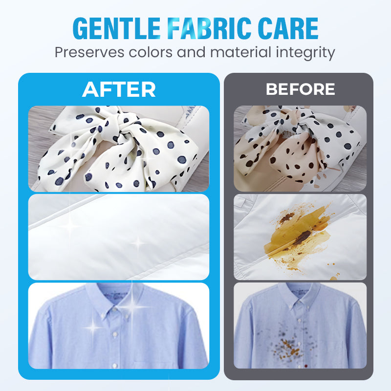 Virker på alle farger: Effektiv på hvite, lyse og mørke plagg uten å skade.