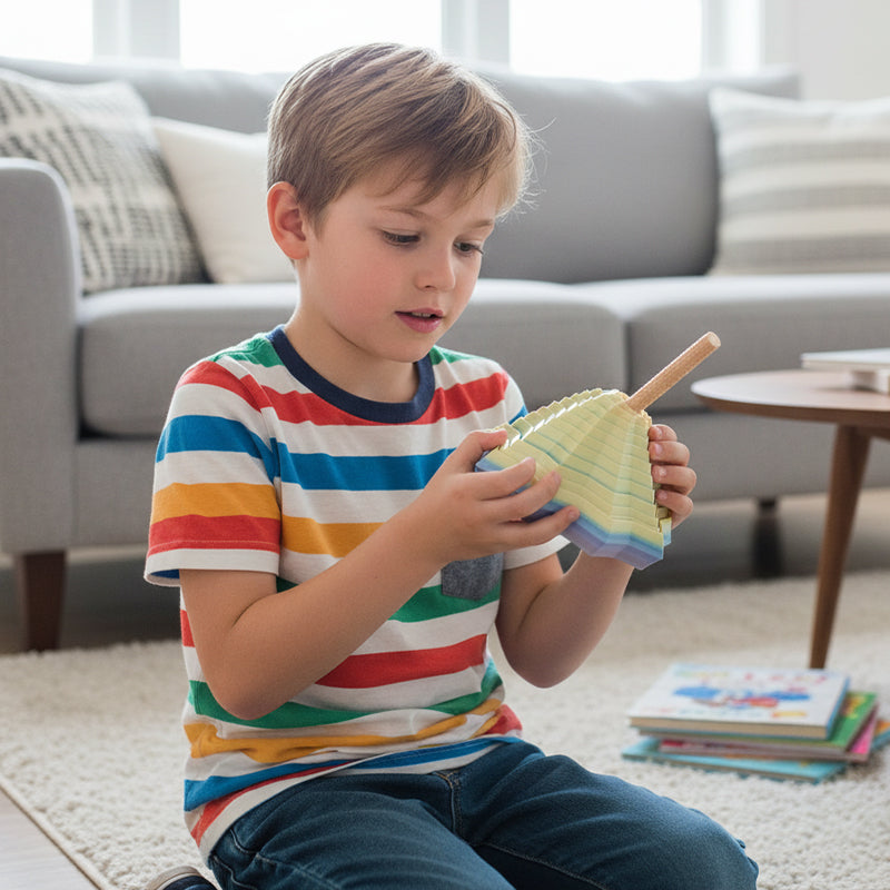 LEVENDE SKRIVEBORDAKSENT – Hver skulptur har et nøye kuratert utvalg av farger, fra livlige gradienter til sofistikerte monokrome alternativer. Disse varierte palettene garanterer en konstant skiftende visuell opplevelse ettersom lagene beveger seg, og sikrer at hvert blikk tilbyr et friskt perspektiv som sømløst komplementerer din eksisterende interiørdesign.